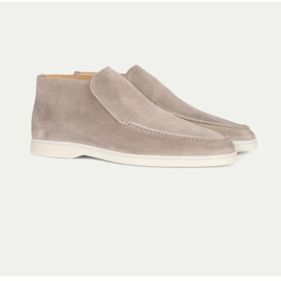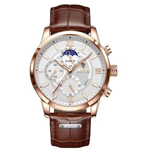 Color: khaki sweater, color shirt, gray trousers, watch, shoes