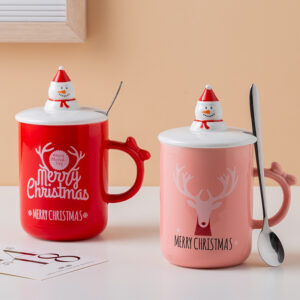 Christmas Gift Ceramic Cup With Lid Spoon Creative